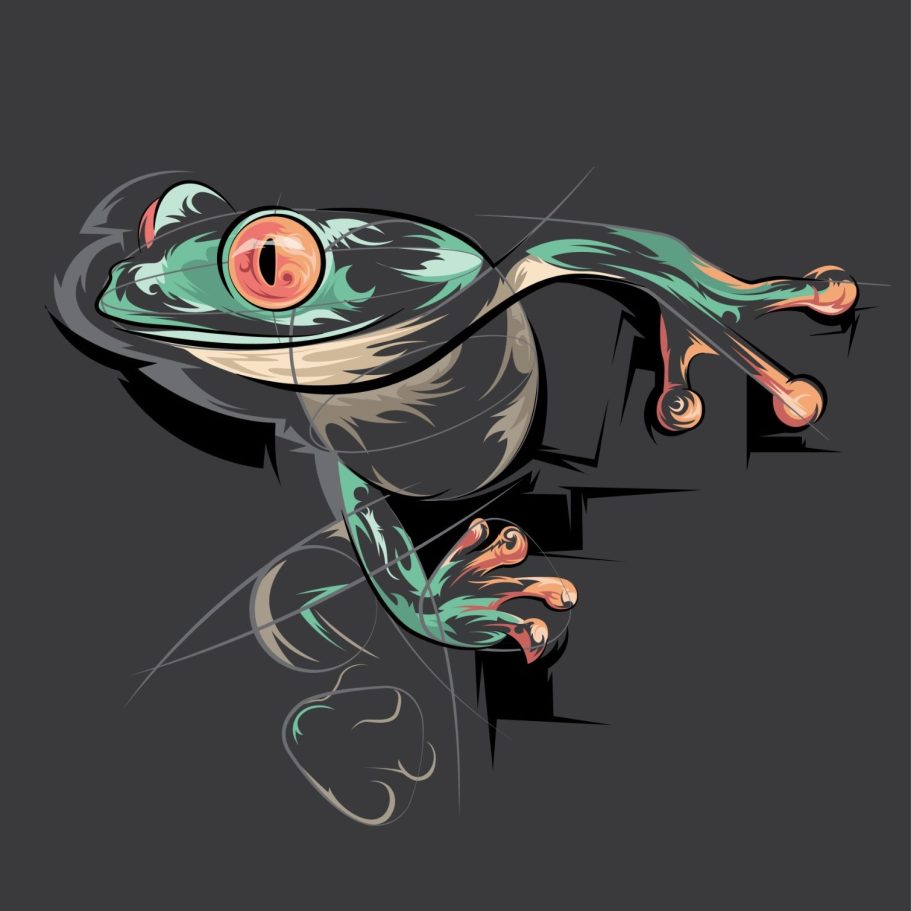 Illustrationen können vielfältig sein. Im folgenden Beispiel wurde der geometrische Skizzenstil mir einer Giftpfeilfrosch Illustration gemixt.
