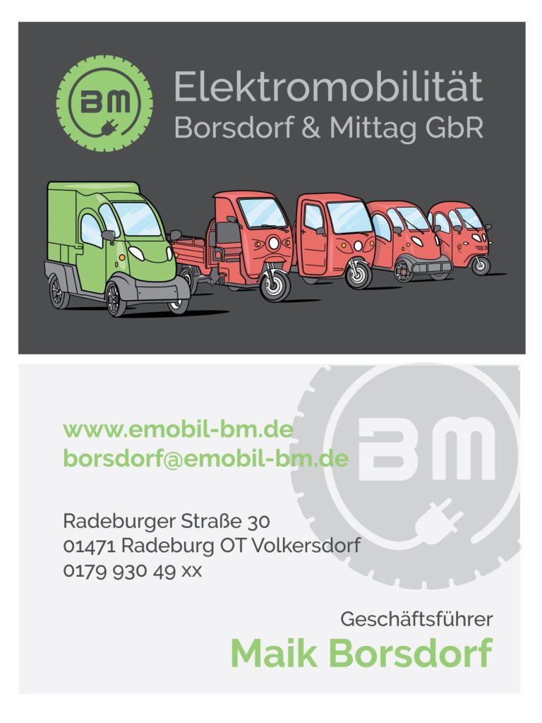 The business cards for EBM in Dresden were designed to include an illustration of the company’s vehicle fleet. In contrast, the back side features a modern, minimalist design.